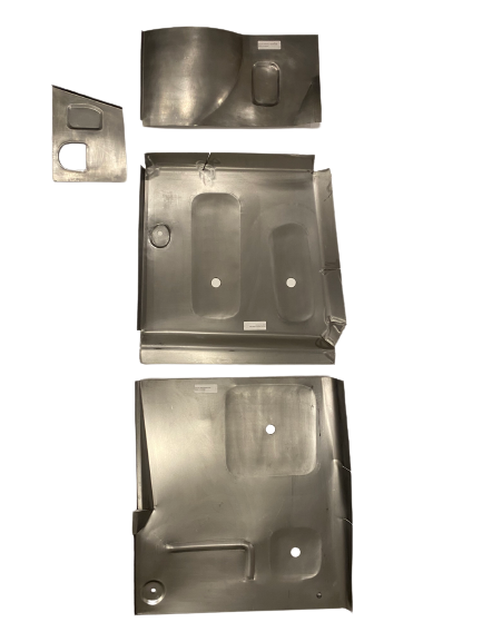 Note: The firewall and kick panel are sold separately (only shown in the photo along with the front and rear floor pieces for illustrative purposes).
